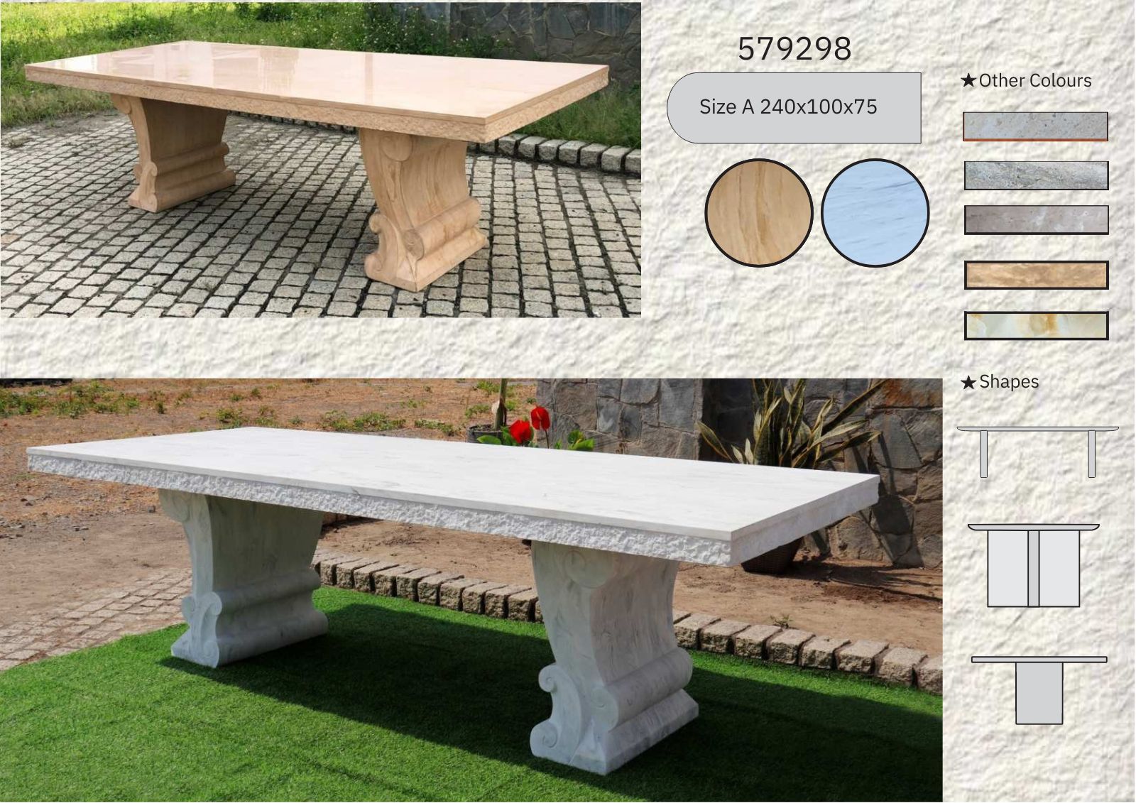 | Shapes | Rectangular tables with classic pedestal bases featuring intricate detailing |