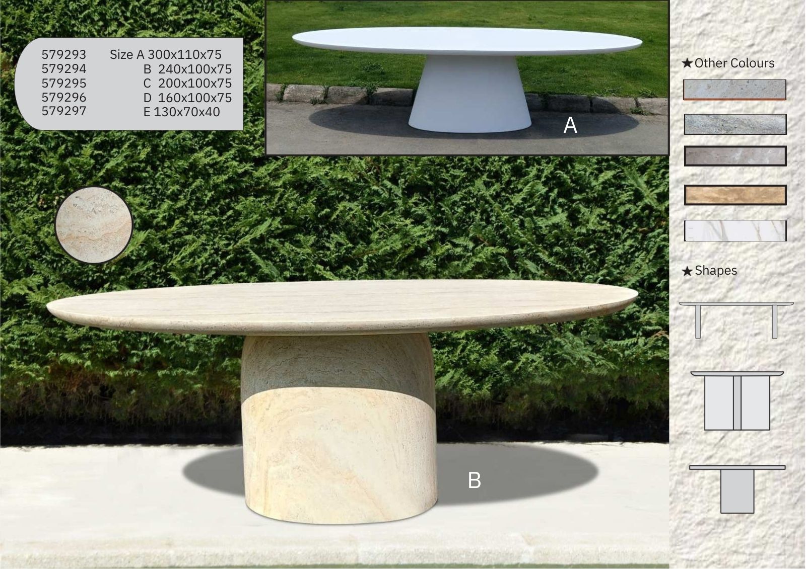 | Material | Magnesium oxide, clay, kaolin, and finished like real stone or marble |