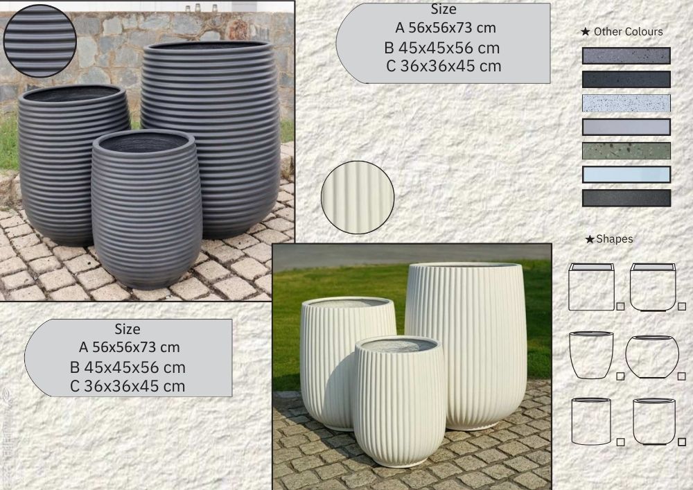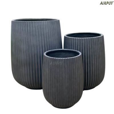 The planters are available in multiple colors, including dark gray, light gray, white, and other neutral shades, making them versatile for different design preferences. The textured design, featuring vertical grooves, adds a modern and elegant touch to the overall look.