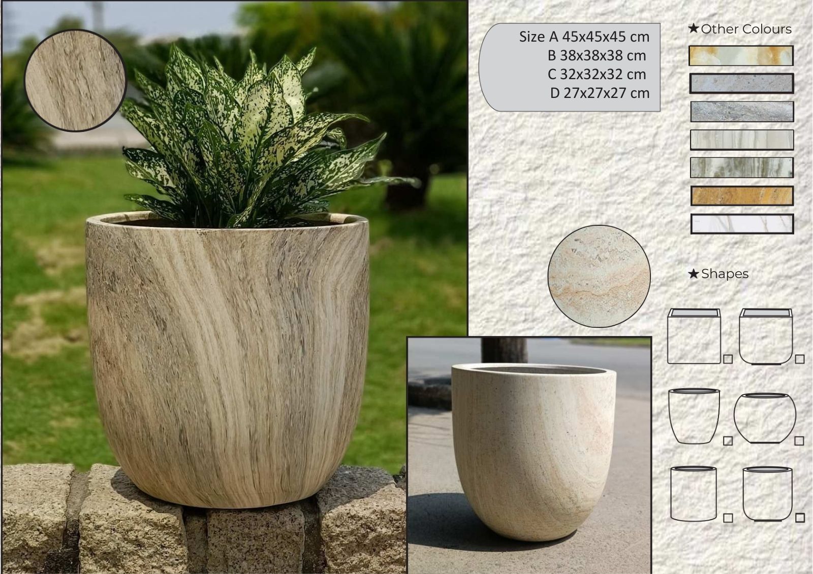 | Material | Composite material with stone-like finish |