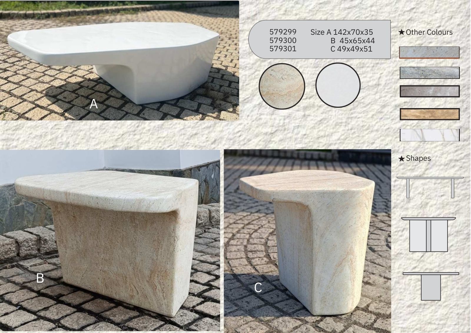| Material | Magnesium oxide, clay, kaolin, and finished like real stone or marble |