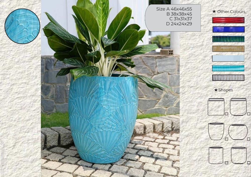 The Eco Ceramic Tall Pots are beautifully crafted, adding an elegant and modern flair to your garden or indoor space. Featuring a delicate, fan-like pattern, these pots come in a range of vibrant colors, making them a statement piece in any setting.