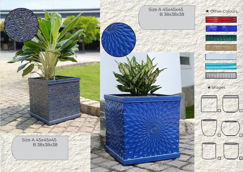 The Eco Ceramic Square Pots are handcrafted planters that feature intricate, eye-catching patterns, perfect for adding a modern, artistic touch to any space. Available in various vibrant colors, these pots enhance both indoor and outdoor settings.